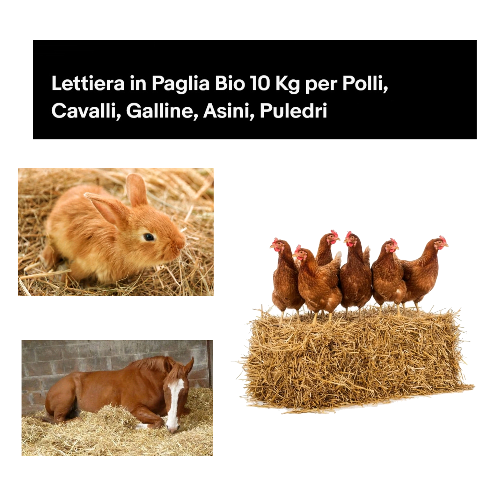 La nostra lettiera in paglia di grano 100% naturale , pressata e depolverata , offre comfort e igiene a conigli, roditori, porcellini d'India, polli, galline, anatre e cavalli . La struttura della paglia assorbe efficacemente l'umidità, aiuta a controllare gli odori e crea un ambiente asciutto e confortevole.