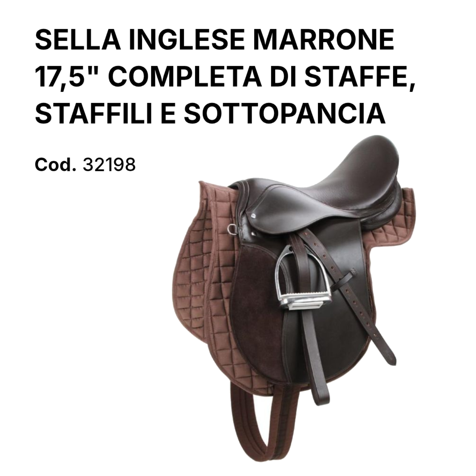 SELLA INGLESE MARRONE 17,5" COMPLETA DI STAFFE, STAFFILI E SOTTOPANCIA