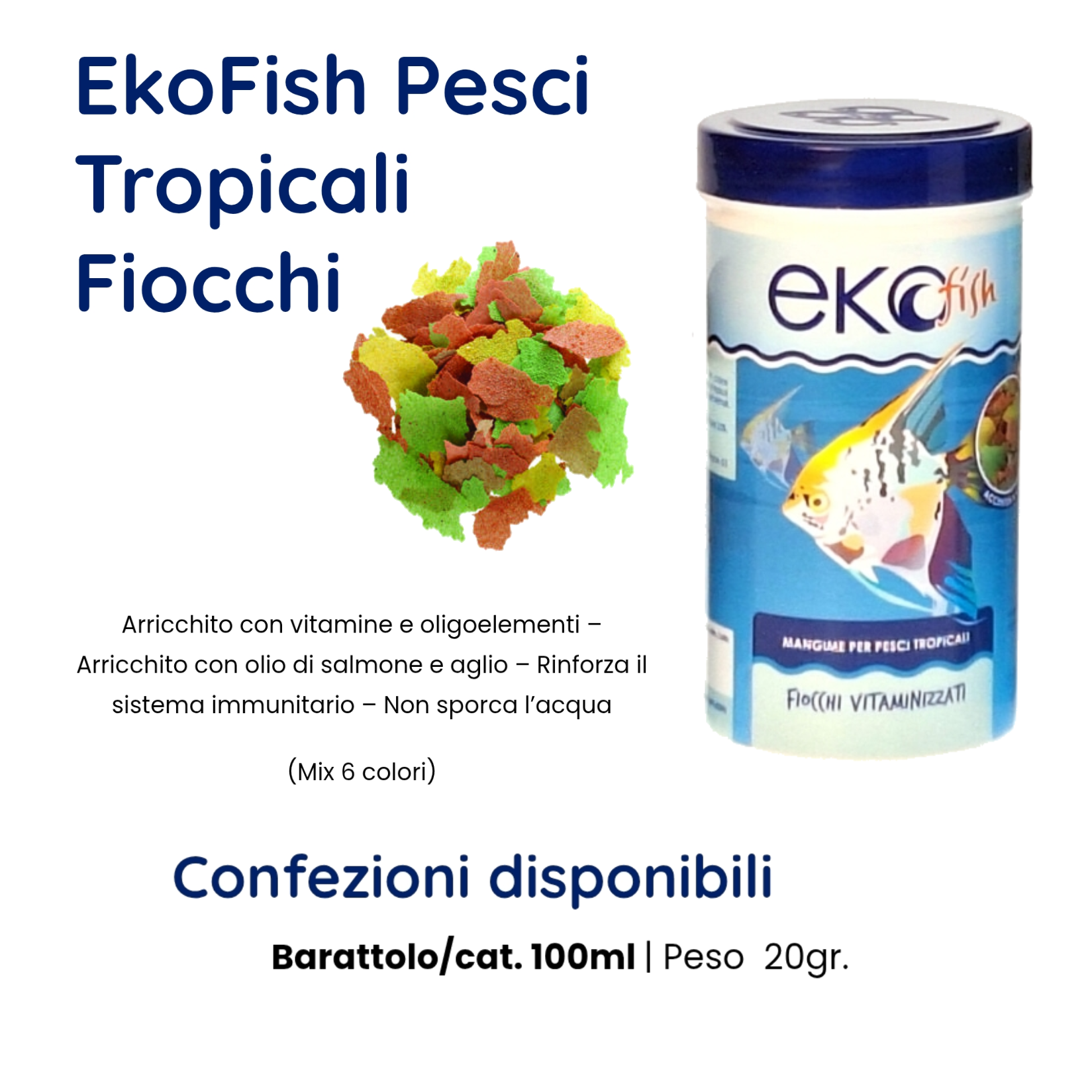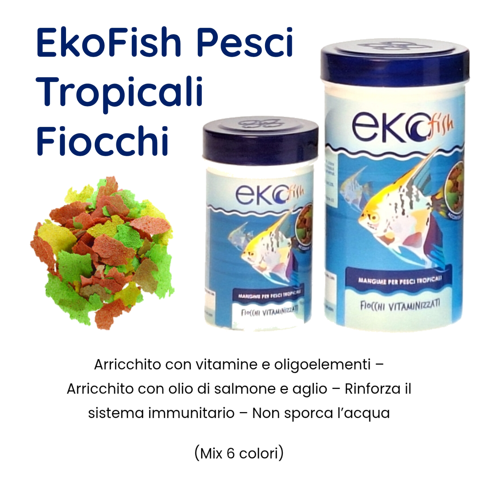 Arricchito con vitamine e oligoelementi – Arricchito con olio di salmone e aglio – Rinforza il sistema immunitario – Non sporca l’acqua